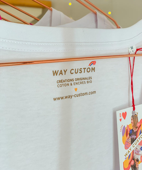 Nos produits tendances et uniques permettent aux femmes de s'exprimer pleinement à travers leur garde-robe, des messages positifs, des coupes féminines, un textile confortable et respirant ; nous n’avons aucune autre prétention chez WAY Custom !
